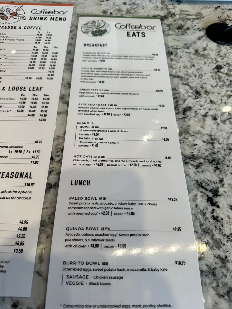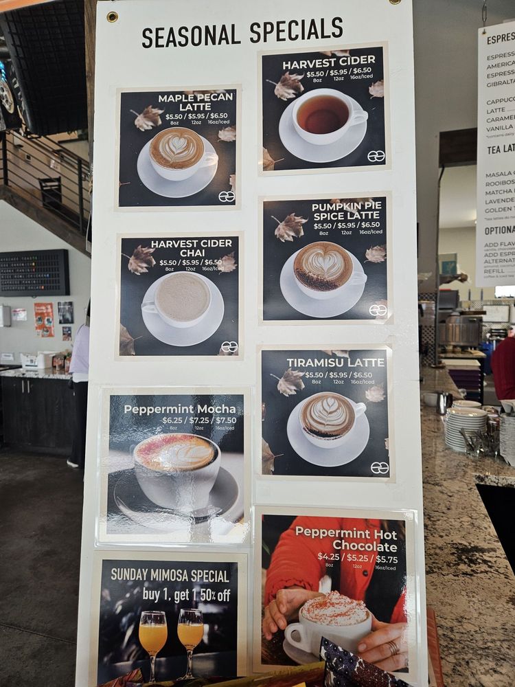 Coffeebar in Reno, NV offers a diverse menu for breakfast and brunch. With options for takeout, delivery, and outdoor seating, this classy establishment provides a relaxing atmosphere for customers. The menu includes a variety of coffee options such as Americano, Cappuccino, and Cold Brew, as well as unique tea selections like Golden Turmeric Latte and House Chai Latte. Seasonal drinks like Harvest Cider and Maple Pecan Latte add a special touch to the menu. Enjoy the warm and cozy ambiance while indulging in delicious hot chocolate or a Peppermint Mocha. With free Wi-Fi and waiter service, Coffeebar is the perfect spot for a morning pick-me-up or a leisurely brunch. Don't miss out on the opportunity to try these delightful beverages in a welcoming environment.